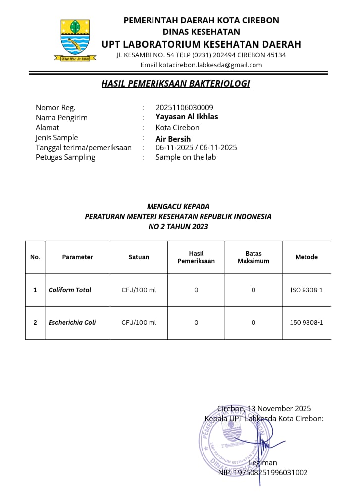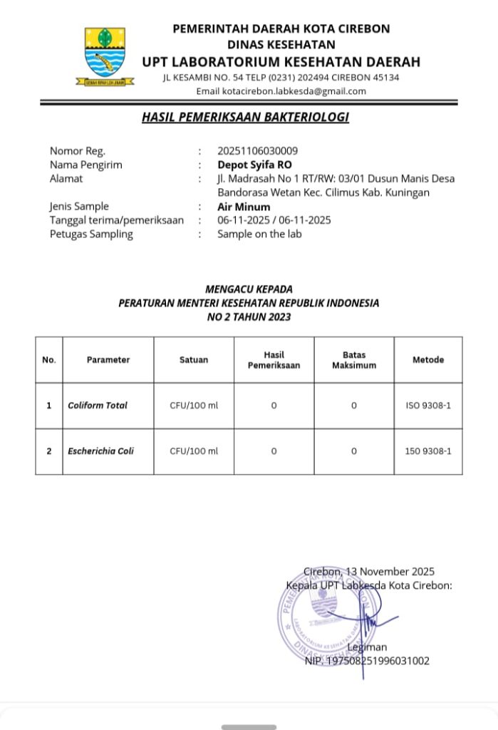 Setiap instalasi mengikuti standar kesehatan dan melalui pengujian laboratorium. Air yang dihasilkan aman, layak minum, dan stabil kualitasnya